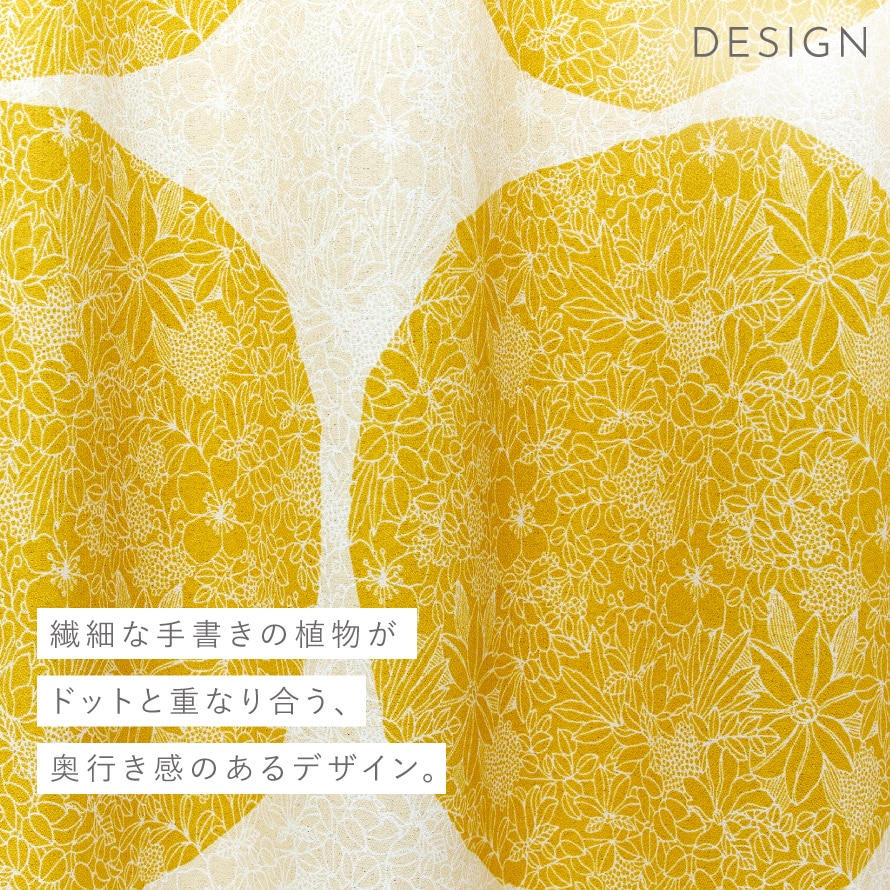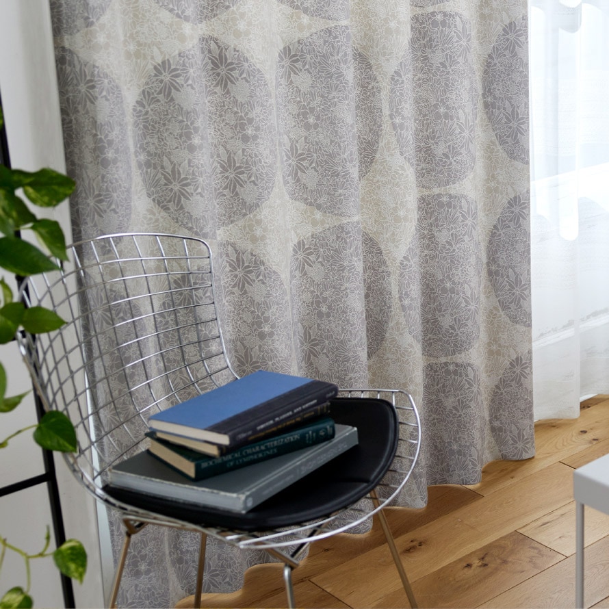 温かみあるイエローは、赤茶系を取り入れた家具と好相性です。ウォーム感のあるグレーは、白を基調としたインテリアにも合わせやすい。大きなドット柄で、丸みのある家具やオブジェ・ラグと合わせることで調和のとれた印象に。緻密なタッチの花柄も見どころです。縮緬(ちりめん)調の意匠を表現した、柔らかな風合いの生地です。