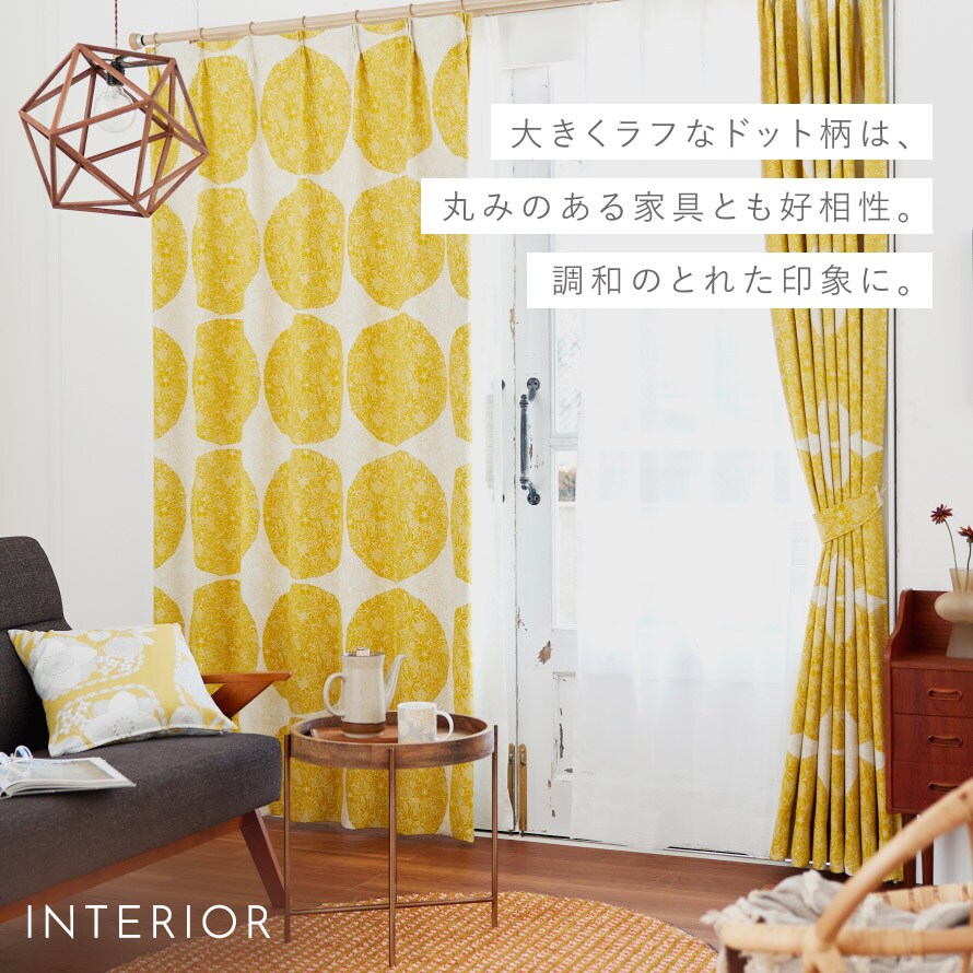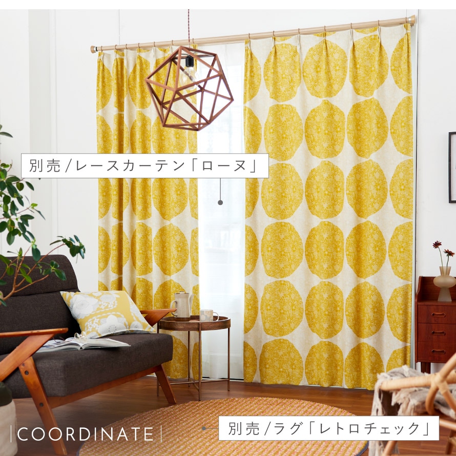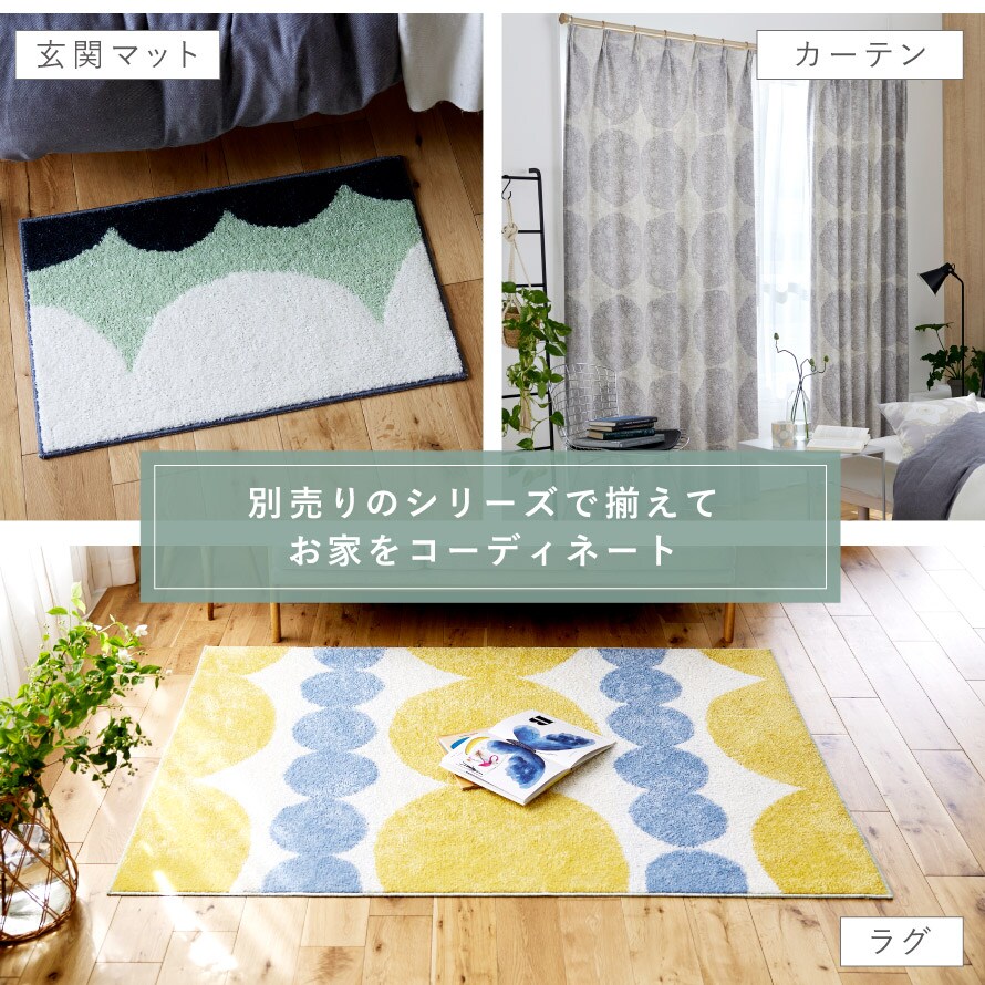 別売りのレースカーテンやラグとコーディネートしても。こちらの柄は、玄関マット、ラグもございます。揃えて楽しいお部屋空間に。