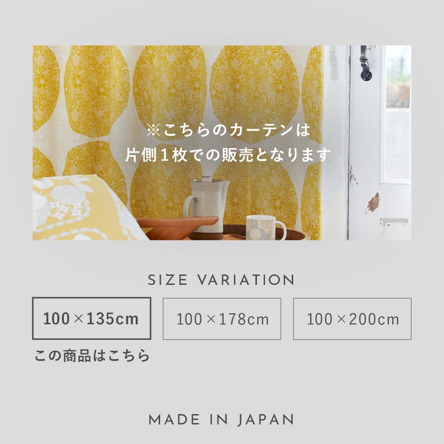 | サイズ | 100×135cm(カーテンフックのレール取付け部分から測った長さ) |