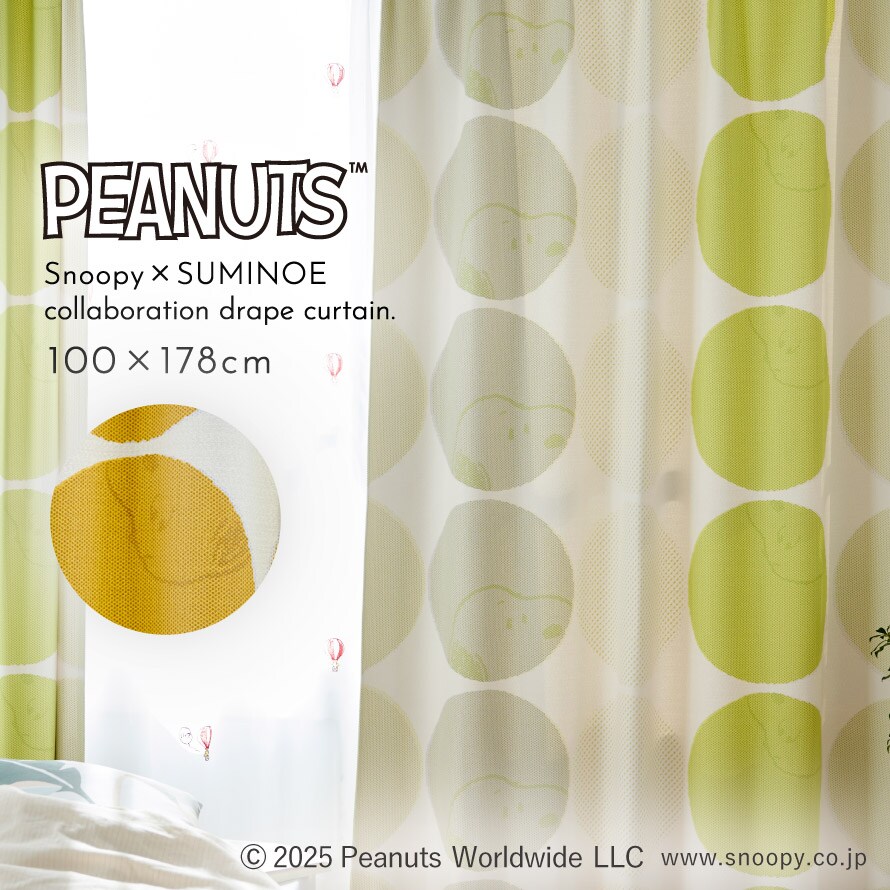 スヌーピー カーテン 遮光 100×178cm PEANUTS ピーナッツ ハーフトーンドット スヌーピーインテリア ドレープカーテン 1枚入 日本製 洗える 北欧 柄 おしゃれ 形状記憶加工 スミノエ SUMINOE