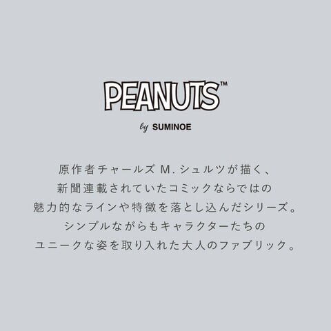 「PEANUTS」の原作者チャールズM.シュルツが描く、魅力的な「シュルツライン」や、新聞で連載されていたコミックならではの特徴を落とし込んだシリーズです。空間に彩りを添えるシンプルナチュラルなデザインに、キャラクターたちのユニークな姿を取り入れた大人のファブリックです。
