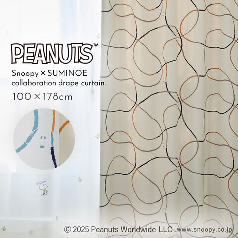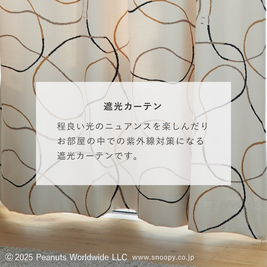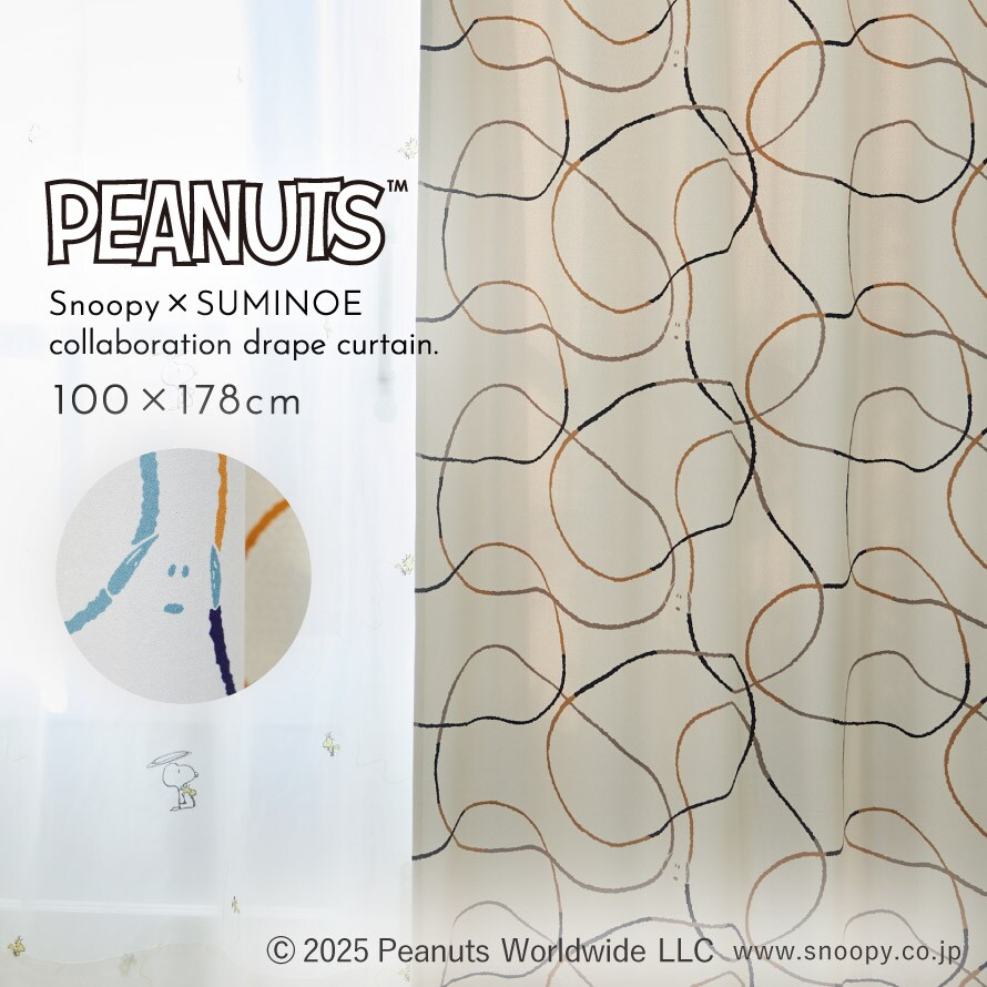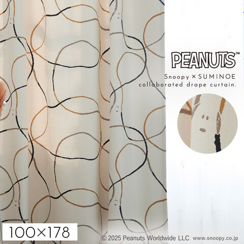 スヌーピー カーテン 遮光 100×178cm PEANUTS ピーナッツ シュルツライン スヌーピーインテリア ドレープカーテン 1枚入 日本製 洗える 北欧 柄 おしゃれ 形状記憶加工 スミノエ SUMINOE
