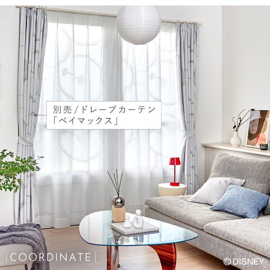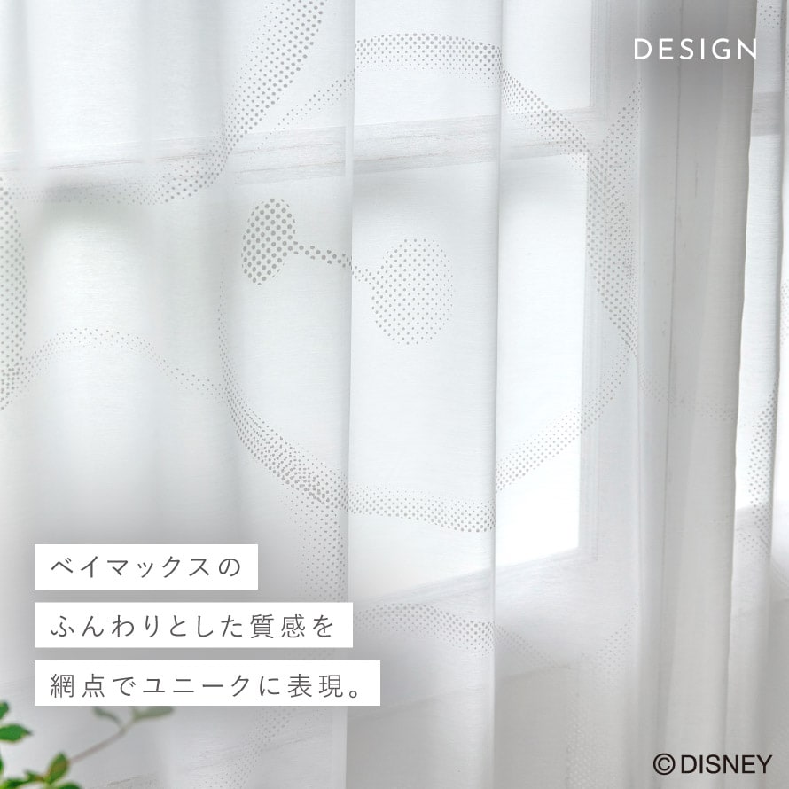 ベイマックスのふんわりとした質感を網点で表現したレースカーテン。シンプルなデザインでモダンスタイルのインテリアにも相性◎。