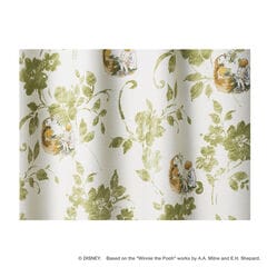 水彩画タッチの植物とプーさんたちが大人可愛いドレープカーテン。挿絵のようなイラストが上品で、インテリアにも馴染むデザインです。