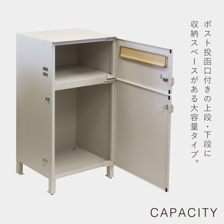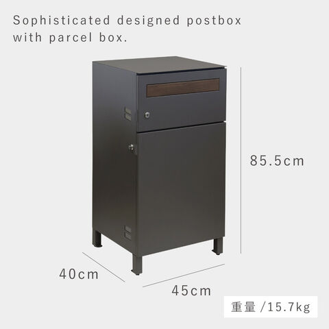 | サイズ | 本体/幅45×奥行40×高さ85.5cm(アジャスター込みサイズ)、上段投函口/幅37×高さ3.9cm、上段取出口/幅40.9×奥行37.8×高さ19.9cm、下段取出口/幅40.9×奥行35.5×高さ47.2cm |