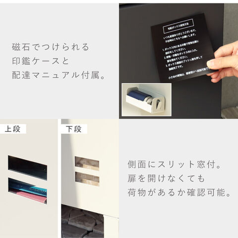 上段・下段はスリット窓付で、扉を開けなくても宅配物が投函されているか確認が可能です。