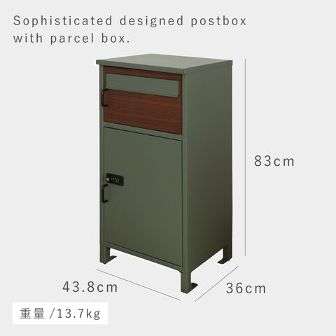 サイズ本体/幅43.8×奥行36(取手込みサイズ)×高さ83cm(アジャスター込みサイズ)、上段投函口/幅35×高さ4.4cm、上段取出口/幅35×奥行31.2×高さ22cm、下段取出口/幅34×奥行30.9×高さ43cm
