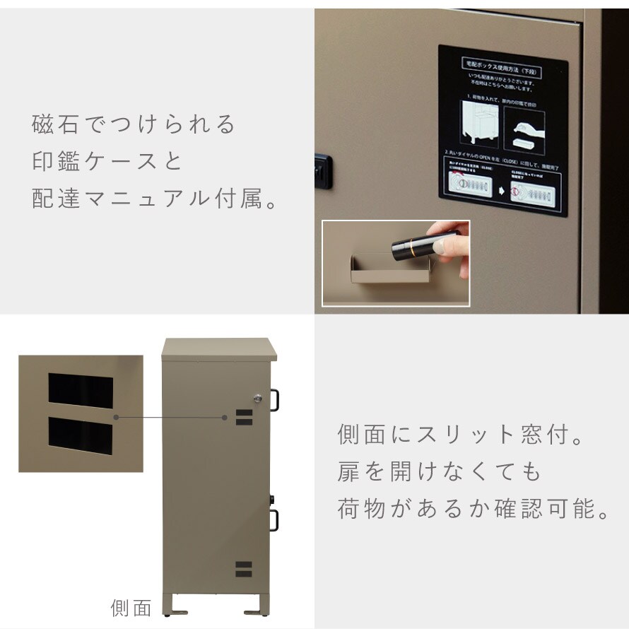 上段・下段とも向かって左側にスリット窓付で、扉を開けなくても宅配物が投函されているか確認が可能です。