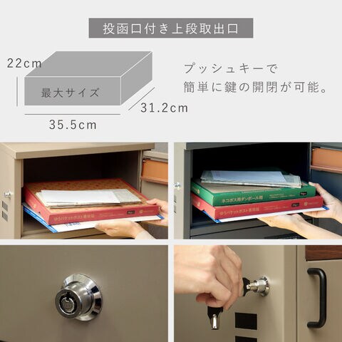 印鑑ケースは2個あり、上段もプッシュキーを使用しているので、上段も宅配ボックスとしての使用も可能です。