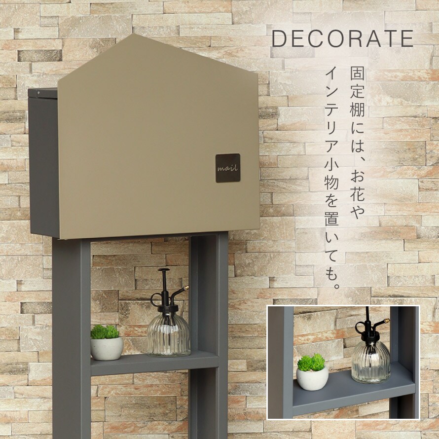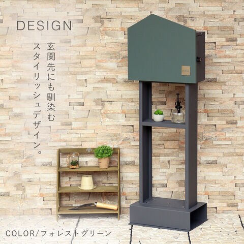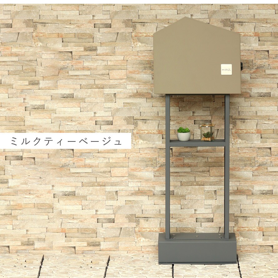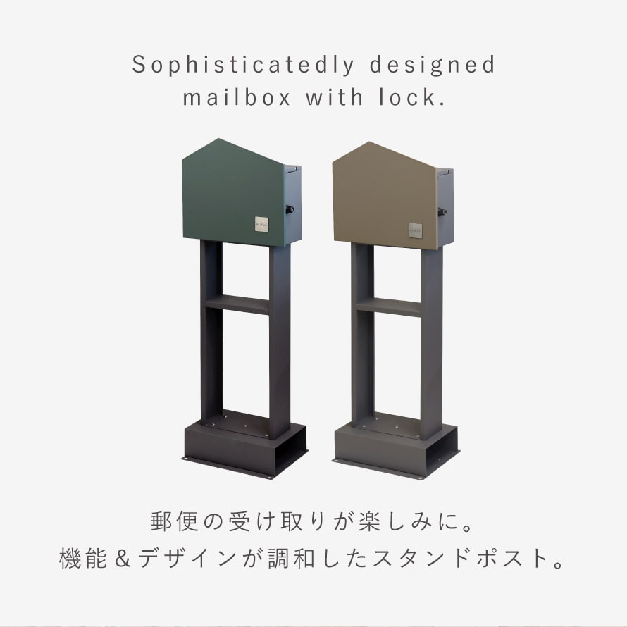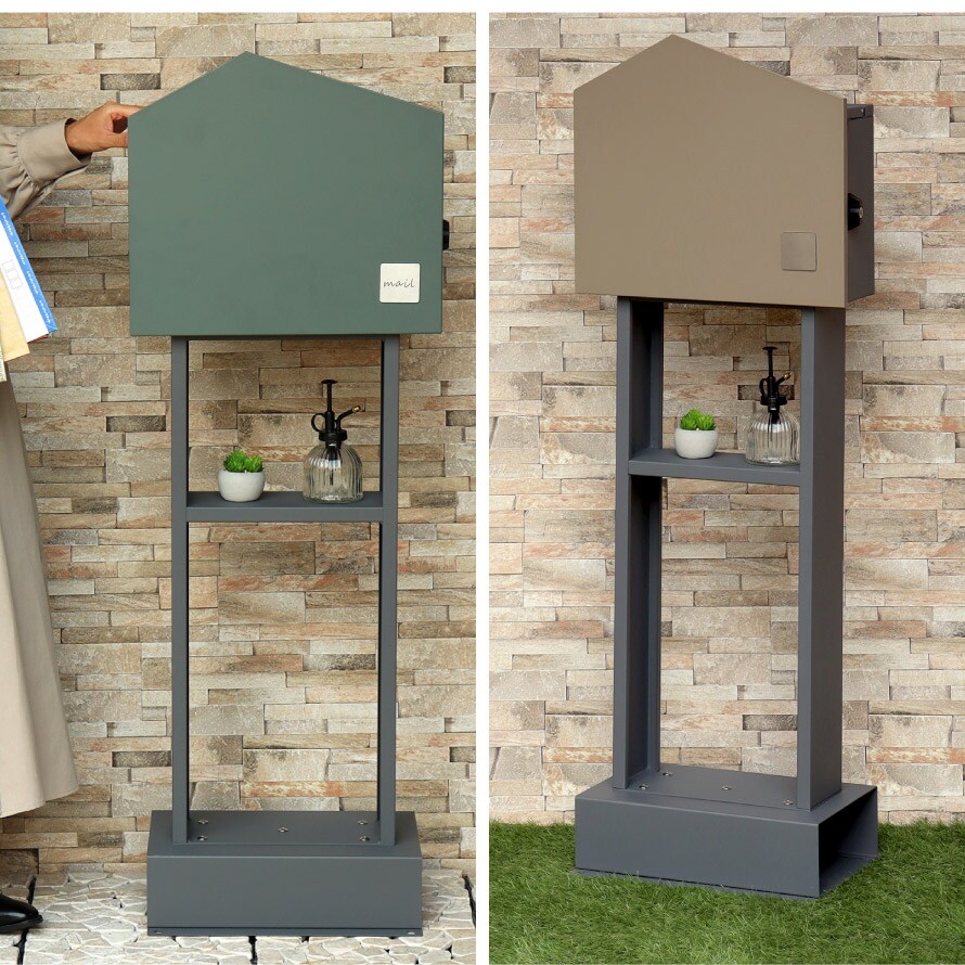 トレンド感あふれるくすみカラーと、屋根のシルエットが愛らしいスタンド式ポスト。
