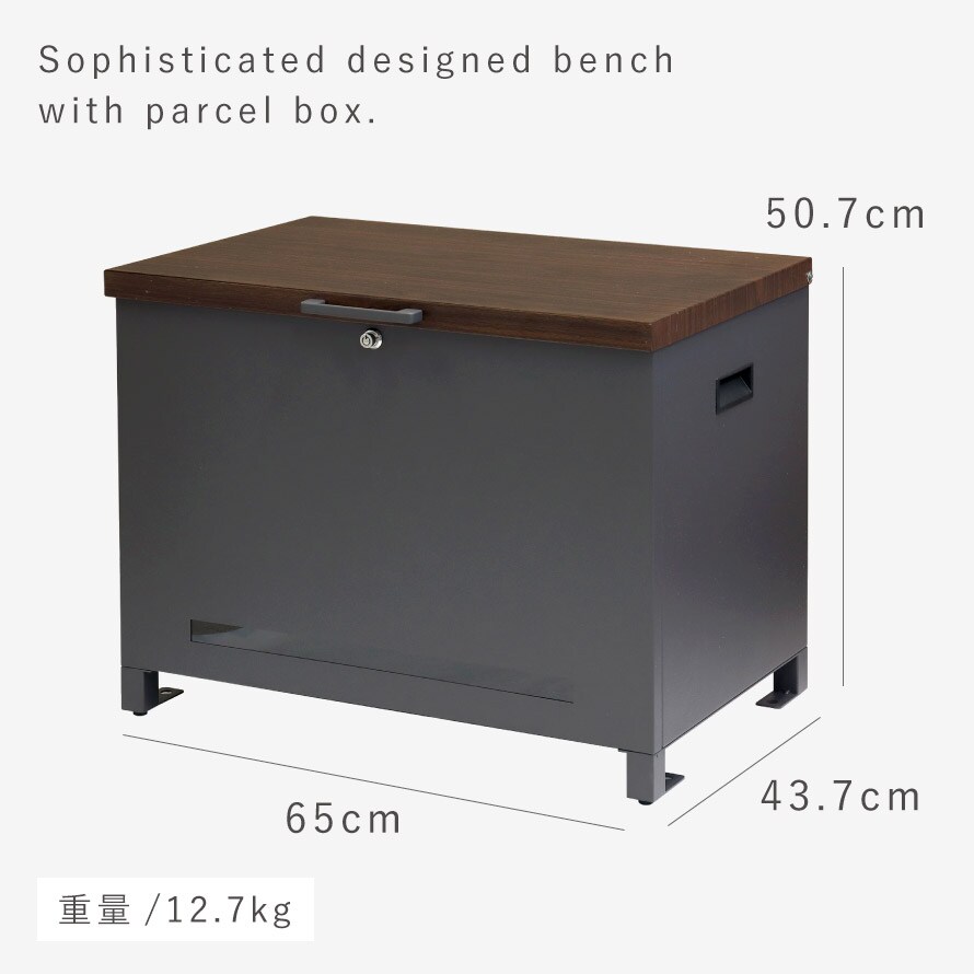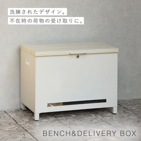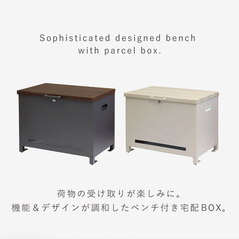 天面は木目調仕上げの高級感、洗練されたデザインのベンチ収納宅配ボックス。