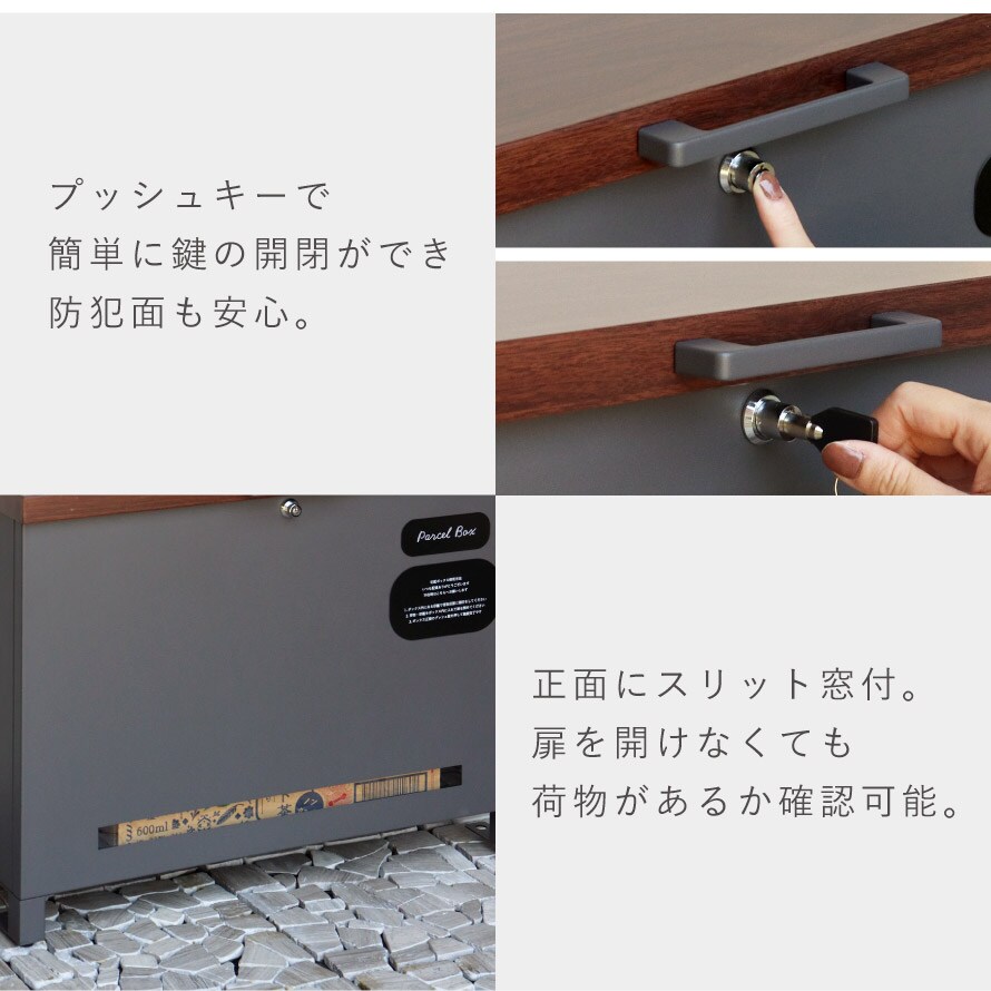正面下部にスリット窓が付いているので、扉を開けなくても荷物の確認ができます。