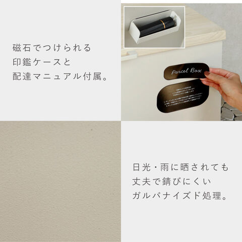 付属品として、キー、アンカーボルト、キーフック付印鑑ケース、宅配業者様用の配達マニュアルが付属しており、宅配ボックスとして、すぐにご使用いただけます。(磁石が付いているので、お好きな場所へ貼り付け可能です)