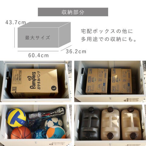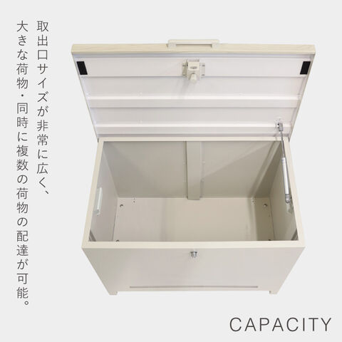 取出口サイズが幅60.4×奥行36.2×高さ43.7cmと非常に広く、大きな荷物や同時に複数の荷物の配達が可能。