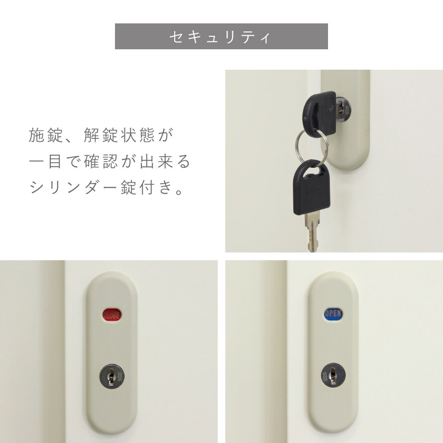 シリンダー錠付きで安心。施錠、解錠状態が一目で確認が出来ます。