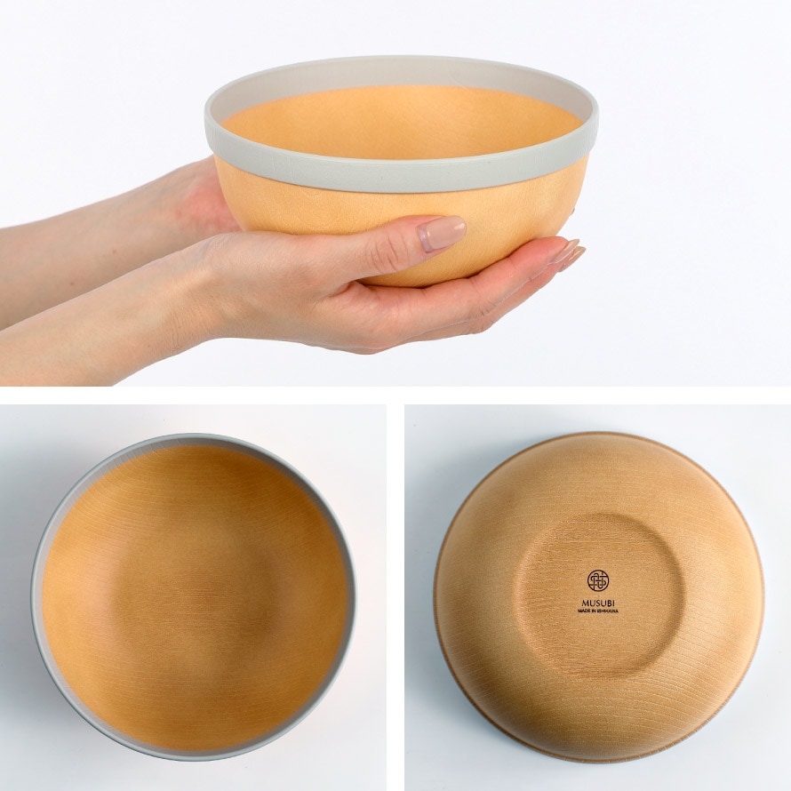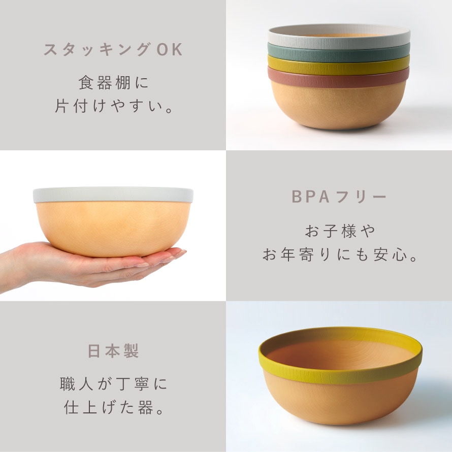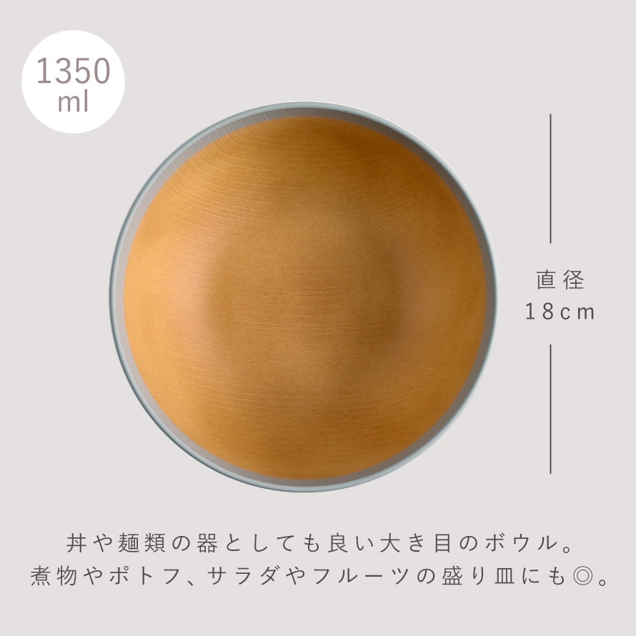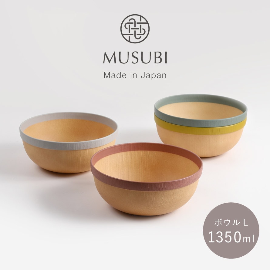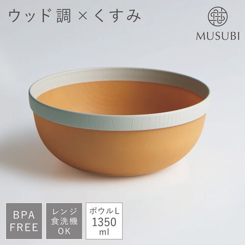ボウル 食器 皿 大きめ 大鉢 1350ml 食器 食洗機対応 レンジ対応 木目調 BPAフリー 割れない 軽い スタッキング 日本製 おしゃれ MUSUBI 塗分け ボウル L くすみカラー 大容量