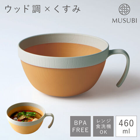 スープカップ 460ml 軽い 軽量 スタッキング 電子レンジ 持ち手付き 食器 食洗機対応 レンジ対応 木目調 BPAフリー 割れない 日本製 おしゃれ MUSUBI 塗分け スープカップ くすみカラー