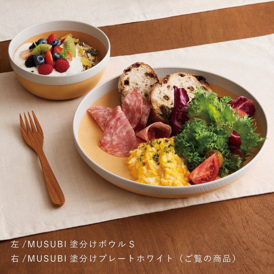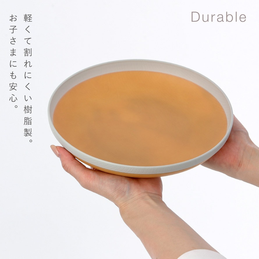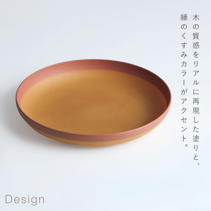 皿 プレート 24cm 割れない 食洗機対応 丸皿 食器 レンジ対応 BPAフリー 木目調 軽い 軽量 北欧 スタッキング 日本製 おしゃれ MUSUBI 塗分け プレート くすみカラー