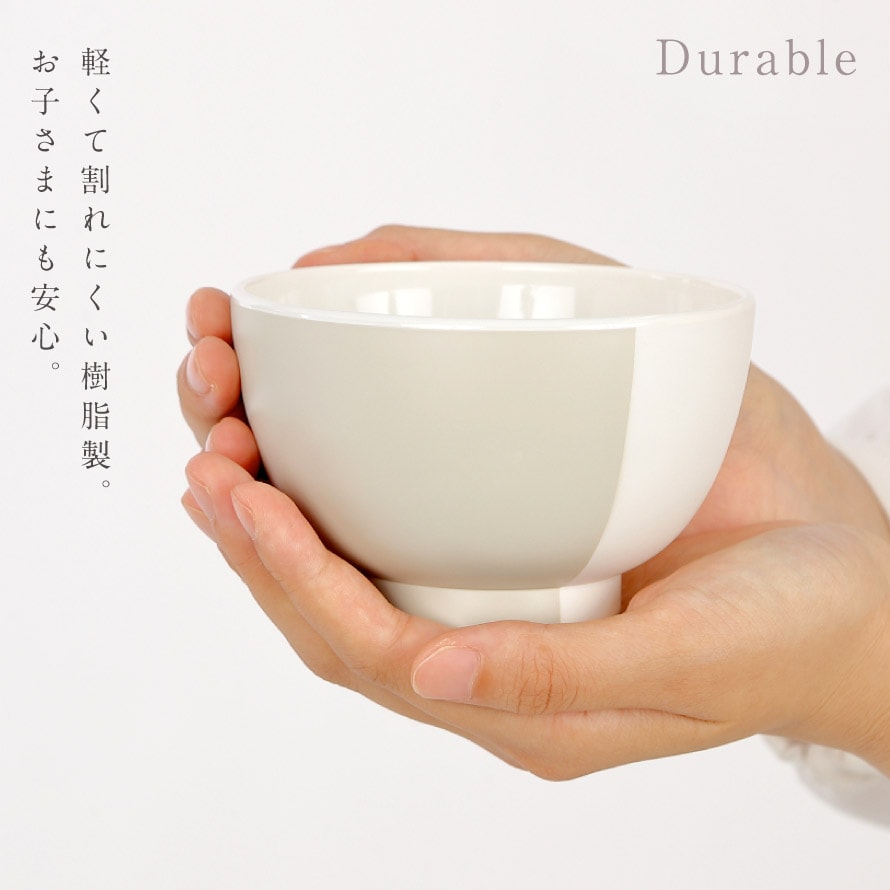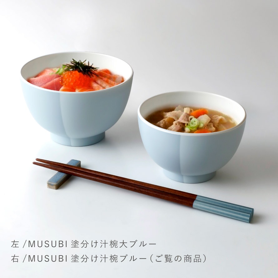 左右で色が異なる、やさしい塗り分けが魅力の樹脂汁椀。