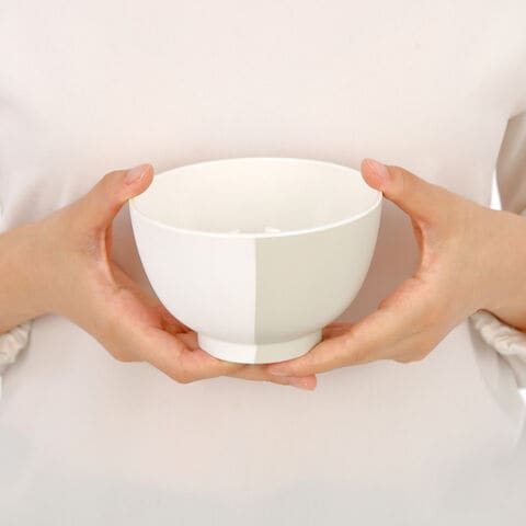 左右で色が異なる、やさしい塗り分けが魅力の樹脂汁椀。