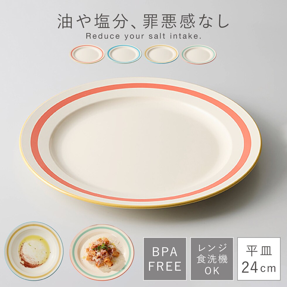 ダイエット プレート 皿 24cm 油切皿 減塩 ヘルシー BPAフリー 食器 健康 油 塩分 落とす 食洗機対応 レンジ対応 割れない レトロ おしゃれ リネア 平皿M