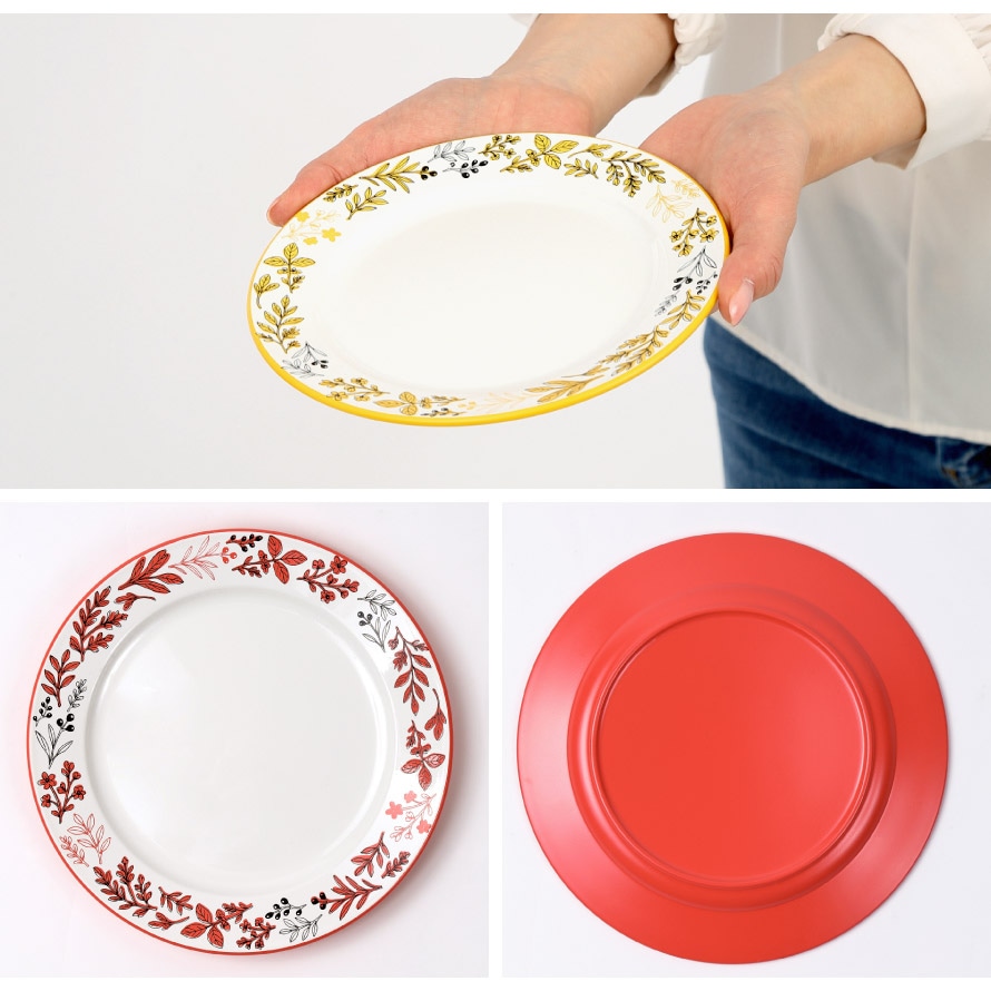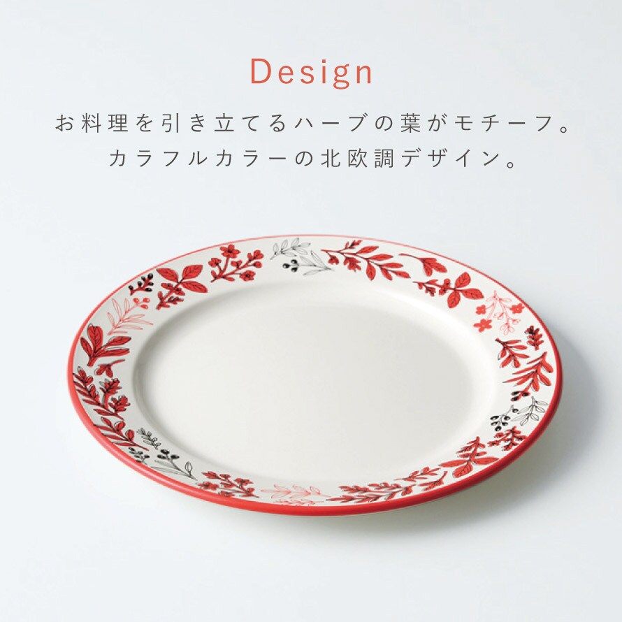 お料理を引き立てるハーブの葉をモチーフにした、カラフルカラーがアクセントの北欧調プレート。