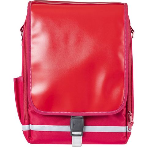 機能:ブックストラップ(教科書固定ベルト)、立体的3D肩ベルトと背面パッド、タブレット・ノートPCが収納できる独立ポケット、撥水加工された合皮かぶせフタ、防水ファスナー、密着性の高い肩ベルト、本体全周リフレクター