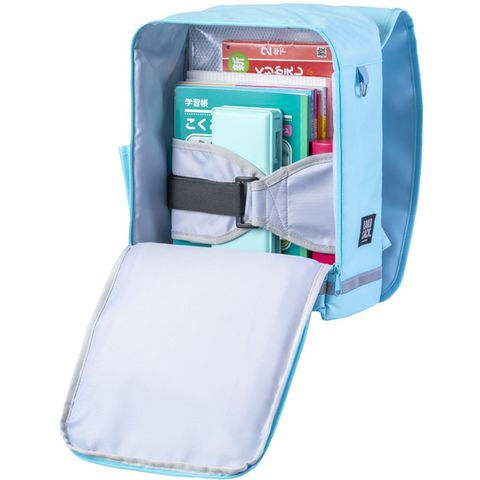 機能:ブックストラップ(教科書固定ベルト)、立体的3D肩ベルトと背面パッド、タブレット・ノートPCが収納できる独立ポケット、撥水加工された合皮かぶせフタ、防水ファスナー、密着性の高い肩ベルト、本体全周リフレクター