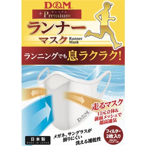 特長:吸汗速乾素材、蒸レニクイ、呼吸シヤスイ、メガネガ曇リニクイ、フィット感抜群、UVカット、耐久性、フィルター付キ、洗エル