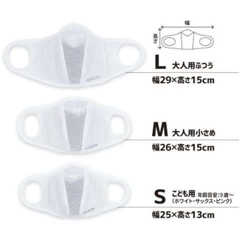 特長:吸汗速乾素材、蒸レニクイ、呼吸シヤスイ、メガネガ曇リニクイ、フィット感抜群、UVカット、耐久性、フィルター付キ、洗エル
