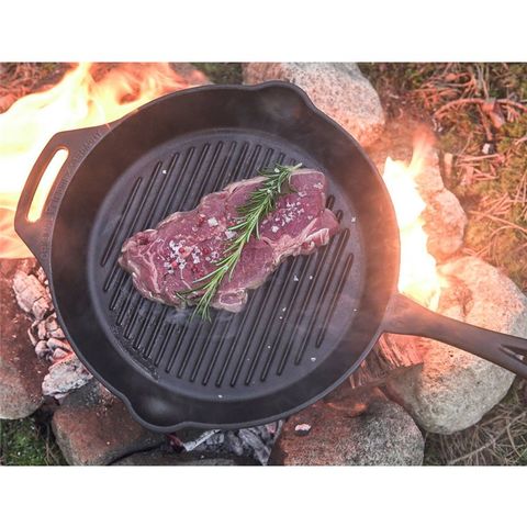焼き面が波状に成型された1ハンドル式スキレット。