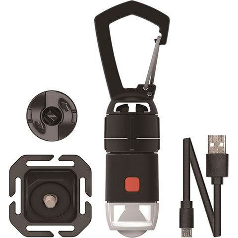 充電式のLEDライトはHigh、Low、Red、Flashing Redの4つのモードに切り替え可能。