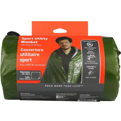 丈夫なポリプロピレン素材の防水・防風性に優れ、内側は体熱を最大 80 %反射のブランケット。