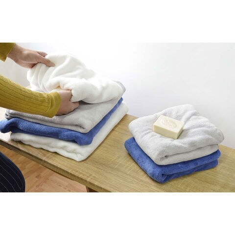 清潔感のあるクールな色合いで触れるとふわふわ、持つと柔らかく軽いその質感は一度使うとやみつきに。