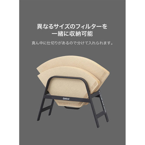 円錐型フィルターも台形型フィルターもストック可能な「カフア コーヒーフィルタースタンド」。
