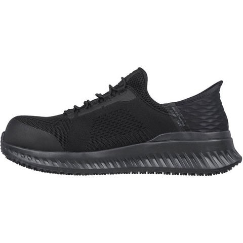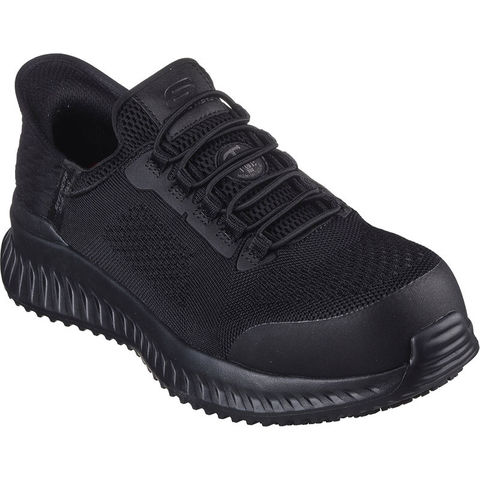 このスリップオンタイプのワークシューズは、エンジニアードメッシュと合成素材を使用したアッパー、ストレッチレースのフロントデザイン、独自のSkechers Slip-ins(スケッチャーズ ハンズフリー スリップインズ)形状のヒールパネル、独自のHeel Pillow(ヒールピロー)、コンポジットセーフティトゥ(非金属)、クッション性のあるSkechers Air-Cooled Memory Foam(スケッチャーズ エアクールド メモリーフォーム)インソールが特長です。