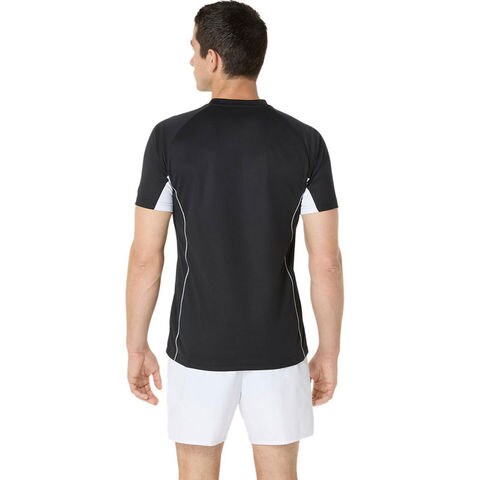 右胸のアシックスマークは刺繍で表現、前後身頃に袖口から裾までのステッチがポイントのゲームプラティクス半袖シャツ