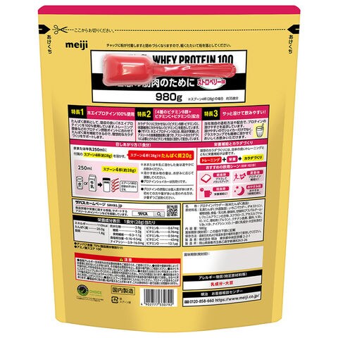 SAVAS(ザバス) ザバス ホエイプロテイン100 ストロベリー味 980g サプリメント(栄養補助食品) スポーツサプリメント 機能性成分 2633079