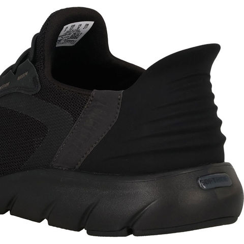 シュータン一体型のスリッポン構造の履き口、かかと部分が柔らかく、立ったまま手を使わず簡単に足入れが可能です。