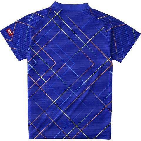 シャープな直線的なカラーラインの重なりで「明日を切り開く」を表現したシンプルなゲームシャツです。