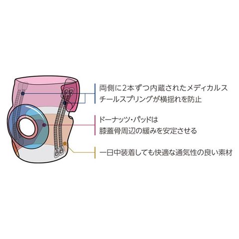 ドーナッツ・パッドは、膝蓋骨周辺の緩みを安定させます。