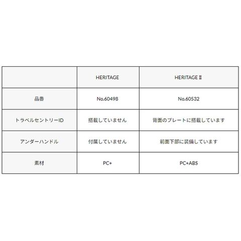 底部にはアンダーハンドルを装備し荷物の上げ下ろしに便利、トラベルセントリー ID 付きで紛失時などの発見率が向上します。