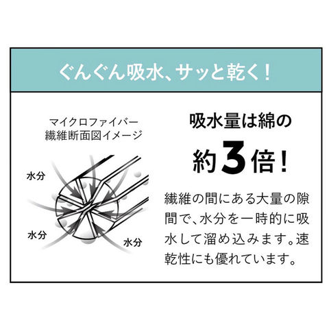 ロングヘアもすっぽり包み込んで、ふわふわマイクロファイバーが髪の毛の水分を素早く吸水してくれます。