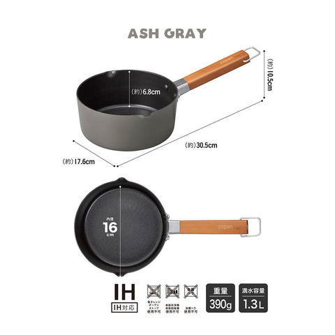 [主素材]本体/アルミニウム合金、底面/ステンレス鋼、持ち手/天然木、[表面加工]内面/ふっ素樹脂塗膜加工、外面/焼付塗装