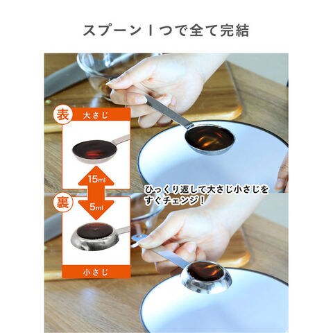 ひっくり返して大さじ小さじをすぐチェンジ!「両面で量れる計量スプーン」。