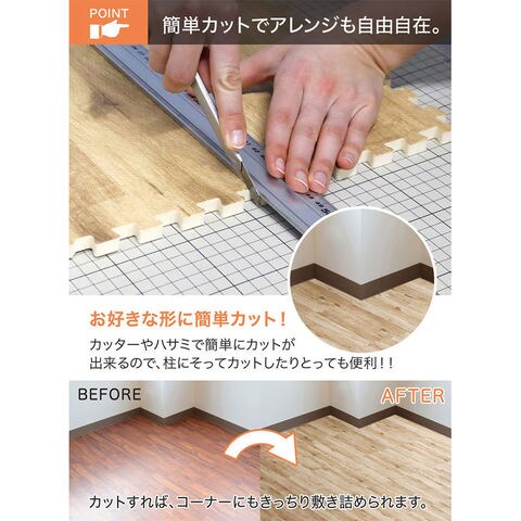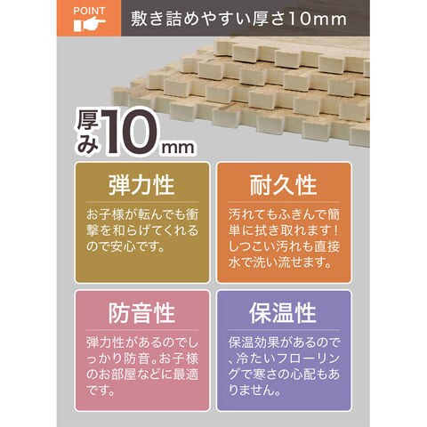フロアマット ラグ 10mm厚 木目調 落ち着いたカラー カット自在 外して洗える 衝撃吸収 床面保護 クッション性 防音性 耐久性 保温性 足音対策 騒音対策 リビング 子供部屋 キッズルーム 保育園 幼稚園 子供 ペット マンション 集合住宅