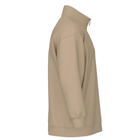 ポリエステルのスウェットで型崩れしにくく、起毛の裏地が快適な温かさを提供。