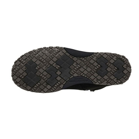 アッパー素材はやわらかな人工皮革で、しなやかで足なじみがいい履き心地にこだわった袋縫い製法を採用。