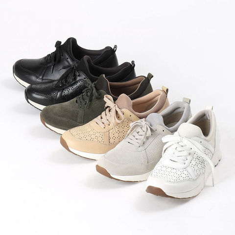 素材:アッパー=合成繊維/天然皮革(牛革/スムース) カーキ、クールグレー=合成繊維/天然皮革(牛革/スエード) アウターソール=合成底 インナーソール=取り外し式 片足重量=約180g ※サイズ23.0cmの場合 ヒール高=約3.0cm ウイズ(足囲)=3E相当