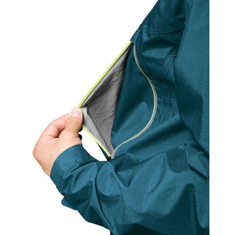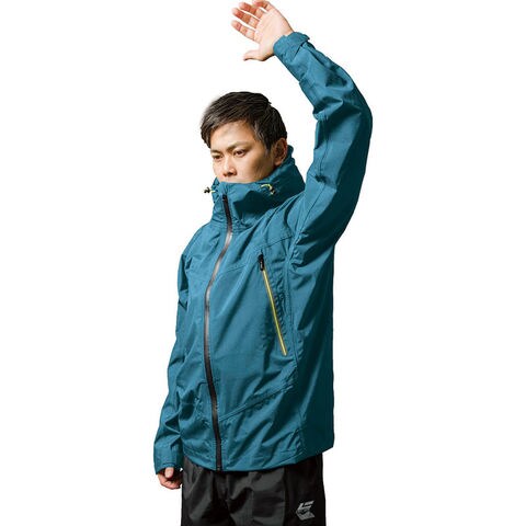 耐水圧10000mmH2O 透湿度5000g/m2-24h、動きやすさに安全性をプラス、少しの光で長時間発光する蓄光技術で視認性を向上●長つばが顔への雨を軽減し視界を確保する形状維持フードつば●脇が突っ張らない構造なので腕の上げ下げがスムーズです●両胸の手差しポケットは内側がメッシュになっており、ベンチレーション機能も併せ持ちます●光に照らされて視認する反射機能に加え、暗所では蓄えていた光で発光する蓄光機能をもつ蓄光反射プリントを採用●両裾のボタンによって2段階好みに合わせた裾上げ調節が可能